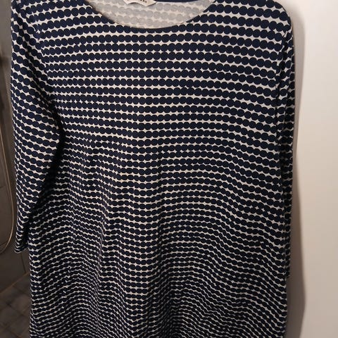 Hyvin pidetty, vain muutaman kerran päällä. 100 % puuvilla, koko S. Niska-helma 90cm, kainalo-kainalo 48cm.