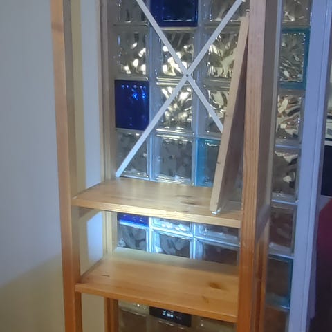 6 maitolasikaapinovea, 3 laatikkoa, työpöytä. Hyllyt, tv:lle syvempi hylly, 3 tikasta