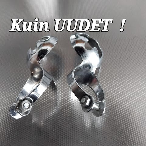 Polkupyörän pumpun pidikkeet ja pumppu 1920-50-luvun mallilla uustuotanto osat. Saksasta ostetut uustuotanto osat vanhaan polkupyörään käyttämättömät. Pidikkeet voi maalata polkupyörän rungon väriin halutessaan.