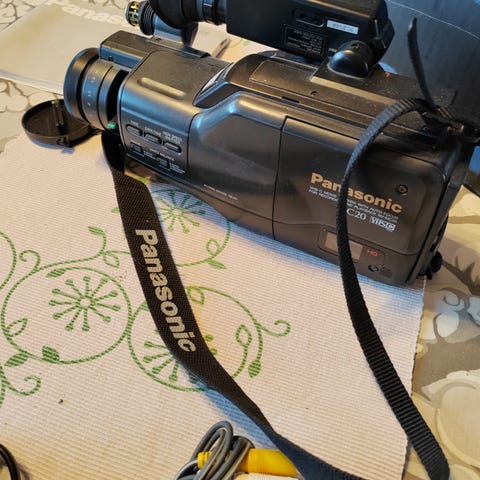 Hyvin säilytetty vanha panasonicin kamera varmaankin jostain 90-luvun loppu puolelta, tutkiskelin kameraa ja koitin parhaani mukaan oppia käyttämään sitä mutta hieman hankala kapistus, sen verran opin kummiskin käyttämään tätä aparaattia että käynnistyy, vhs-c kasetti pyörii mustavalkeana linssissä, ja kun yhdistää piuhoilla telkkariin niin värimaailmat näkyy sekä ääni toimii. En ole testannut että toimiiko nauhoitus joten se jää ostajalle selvitettäväksi, ainakin zoomaus onnistuu sekä linssin kautta katsottuna näyttää hyvältä. Kova ääninen, vaikuttaa siltä että melu kovenee tietyissä kohtaa kaseteissa, voi olla laittesto vika, kaseteissa vika tai akku? huomasin kun joka kerta akusta loppui virta niin melu yltyi, voi jäädä myös mysteeriksi. Kaksi akkua molemmat alkuperäisiä, pienemmästä akusta yksi navoista hapantunut voi olla että saa putsattua ja eheytettyä sen, ottaa kosketuksen laturiin. Isompi akku toimii ja saa virtaa, mutta ei kestä kovin kauaa kun loppuu virta, tämän mallisia akkuja saa ostettua kyllä uutena netistä. Kaukohjaimesta en osaa sanoa toimiiko koska en ole vielä kerennyt ostamaan paristoa siihen ja testaamaan. Kameran jalasta mennyt vatupassi rikki mutta toimii muuten moitteettomasti! Hinta ei ole tiukka, pelkkä kamera ilman oheislaitteita oli netissä mennyt 160e jotenka laitoin vain hinta arvion omasta päästäni tule ja tarjoa.