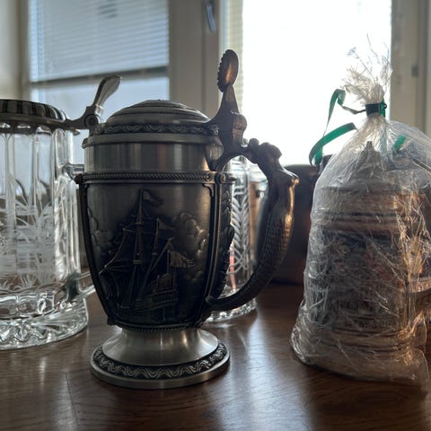 Vintage ranskalainen lasinen oluttuoppi LA BONNE BIERE