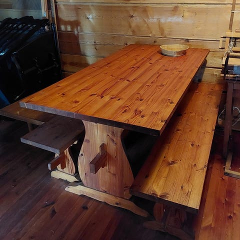 Tukevan tanakka.painava turvallinen ja hyvä.Kylä puusepän tekemä.pöytä Kolilla..HP 400/tarjous