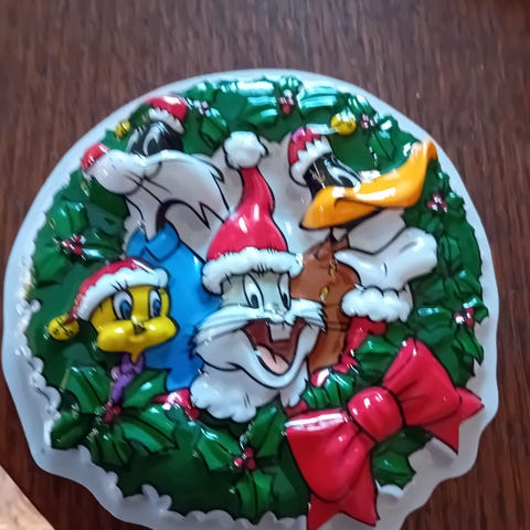 Kullanvärinen kakkukoriste 22.5 cm ja 1 rulla kultaista serpentiiniä.