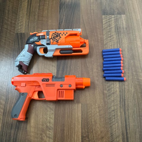 Hyväkuntoiset NERF-aseet etsivät uutta leikkijää, hinnat näkyvät kuvissa. Hintahaitari 5-30€ välissä.