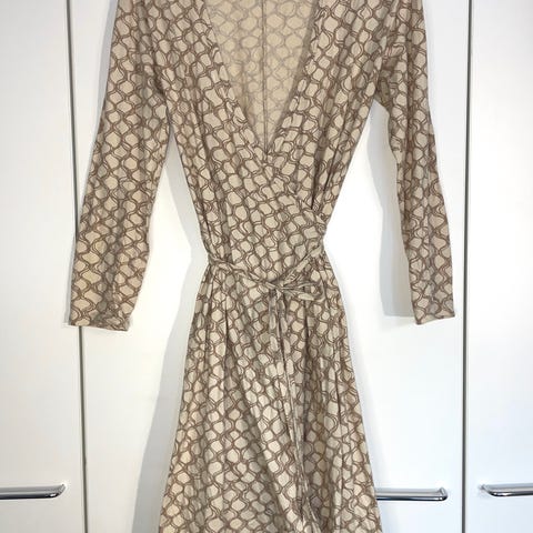 Myydään kaunis ruskea-valkoinen Nanson kietaisumekko. Koko s, kunto hyvä.