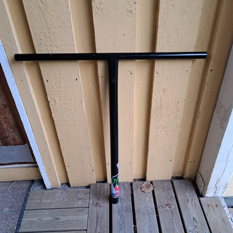 Musta Ethic Trianon scootin tanko. Leveys 49,5 cm, pituus 59 cm. Tangon ulkohalkaisija 32 mm (standardi) ja sisähalkaisija 28 mm. Materiaali: kromiteräs 4130. Sopii SCS-forkkiin. Mukaan käsigripit.