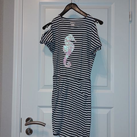 Lasten mustavalkoinen shorstipuku kuvionnilla ja vaaleanpunaisella vyöllä. Merkki on Lindex ja koko 146. Lisäkuvia saa pyytää :]
