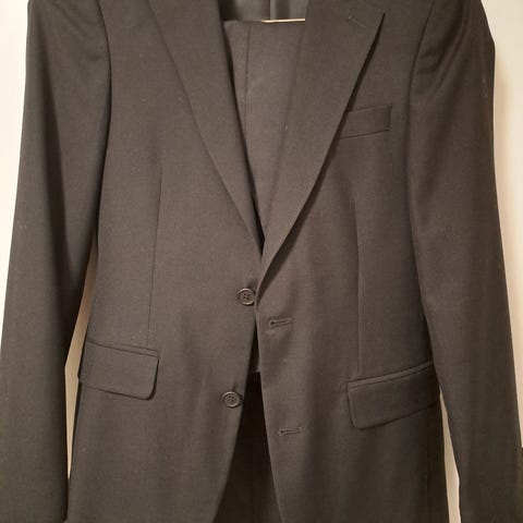 Myydään hyväkuntoinen poikien sininen slim fit puku. Takki koko 44 ja housut 30/30. Koiratalous.