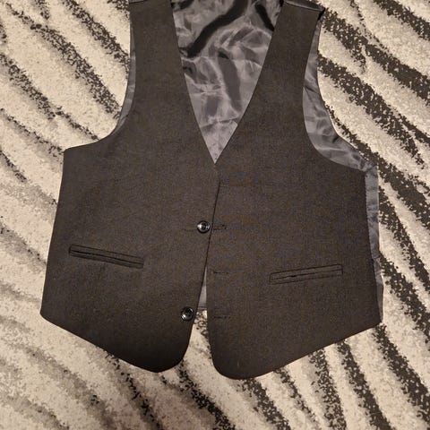 PlayZone merkkinen joustava musta neuleliivi / slipoveri on kokoa 130. Puuvillainen liivi on ostettu lapselle uutena ja ollut vähällä käytöllä, joten on vielä hyväkuntoinen.