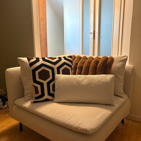 Myydään söderhamn nojatuolin päälliset. Väri tummanharmaa. Pohjakangas revennyt istuintyynyn alta, muttei näy käytössä. Tämä väri ilmeisesti poistunut valikoimasta. Nouto metsokangas tai postitus.