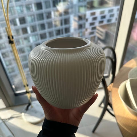 Pieni valkoinen kasviruukku. Pituutta n.9cm.