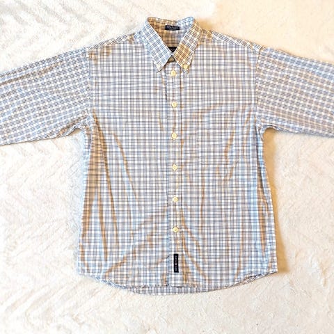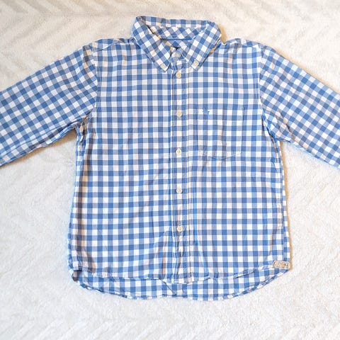 Poikien Benetton merkkinen sini-puna-valkoruudullinen kauluspaita / juhlapaita on noin kokoa 134. Lyhythihainen kauluspaita on ostettu lapselle käytettynä ja on vielä hyväkuntoinen.