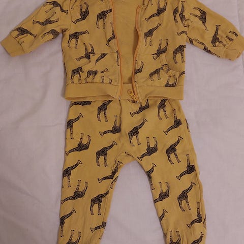 Myydään söpö ja hyväkuntoinen vaaleansininen collegetakki ja - housut, koko 62.