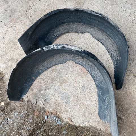 Korjausta vaativa alkuperäinen lokasuoja vm. 1987 autosta. Helma täysin mätä.