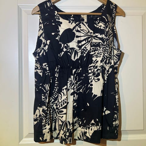 Uudenveroisessa kunnossa oleva punainen yläosa, jossa edessä hillitty vekkimäinen yksityiskohta. Materiaali kevyttä ja kauniisti laskeutuvaa eikä ole nyppyyntynyt. Niskassa nappikiinnitys ja sen alla vähän matkaa avoin.