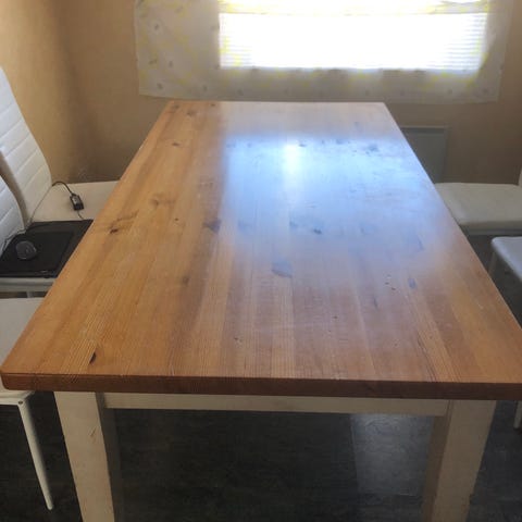 Ruokailuryhmä aitoa puuta. Pöytä ja 4 tuolia. Mahtuu hyvin pieneenkin asuntoon ja tarvittaessa jatkettava. Jatkettuna n.174,5cm.Pelkkä pöytä 60e. Ruokailuryhmä 110e
