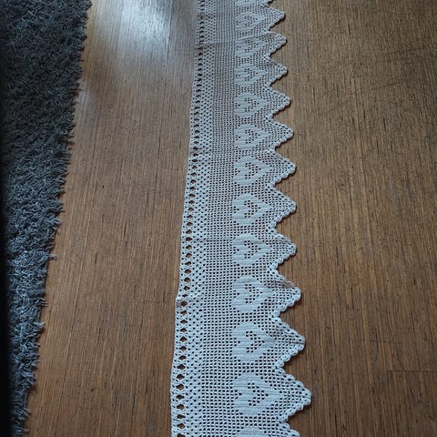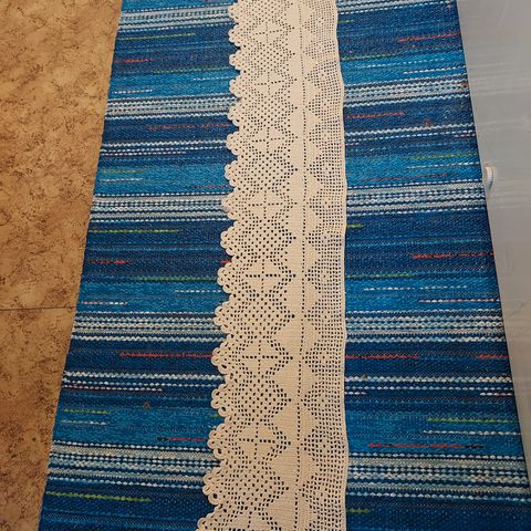 Virkattu uudenveroinen verhokappa 43cmx140cm.