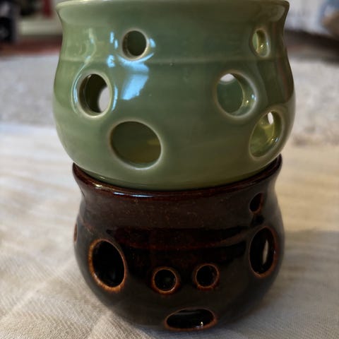 Kaunis ruskea Kerman saven kynttilälyhty. Tuikkukippo. Korkeus 10cm ,halkaisija 13cm.
