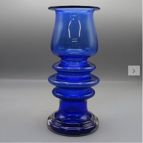 Turkoosi ja sininen Riihimäen lasin maljakko.