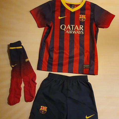 lasten "Rivaldo / F.C. Barcelona" peliasusetti. pituus 55 cm, leveys rinnan kohdalta 42 cm. housuissa nyppyjä, ks kuva