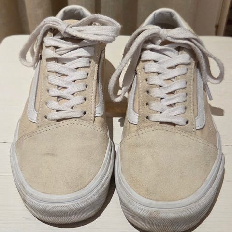 Myydään Vans Old Skool tennarit koossa. Toisen kengän kangas hieman purkautunut varresta, mutta muuten hyväkuntoiset ja vähän käytetyt tennarit.