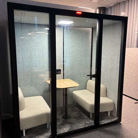 Meetingpod/ neuvottelunurkka / sohva ja pöytä + seinät