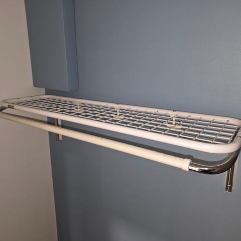 Skagerakin Cutter-hattuhylly sopii niin päähineiden, asusteiden kuin takkienkin säilytykseen. Puisen hyllyn mitat ovat 120 cm x 34 cm, ja sen alta löytyy viisi metallista ripustusnuppia.