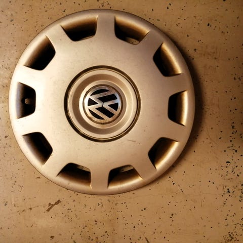 VW pölykapseli. En tiedä mikä malli mutta koko: ulko kehä halk. 41,7cm, kiinnitys kynsien ulko halk. 37,5cm.