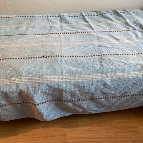 Valkoinen, lähes uuden veroinen ylellinen paksu päiväpeitto. Päiväpeitto on teetetty tilaustyönä Sisustusnallessa Helsingissä. Peitto on jäänyt vuosiksi käyttämättä, koska perheeseen on tullut koiria, joten valkoinen peitto ei ole meille kovin käytännöllinen.