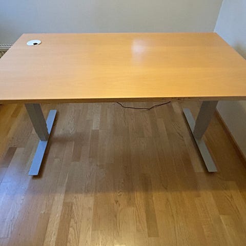Iskun musta BW Rise sähköpöytä. Pöytälevyn koko on 140 x 70 cm ja korkeuden säätöväli 70-117 cm. Erittäin hyvässä kunnossa. Pöydän jalassa muutama hyvin pieni valkoinen jälki, kts. viimeinen kuva.