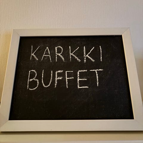 Pieni metallinen liitutaulu. Koko 22 x 22 cm . Hauska sisustuselementti, tai käytä viestien kirjoittamiseen perheen kesken, kauppalistan tekoon, tervehdyksenä ovella…