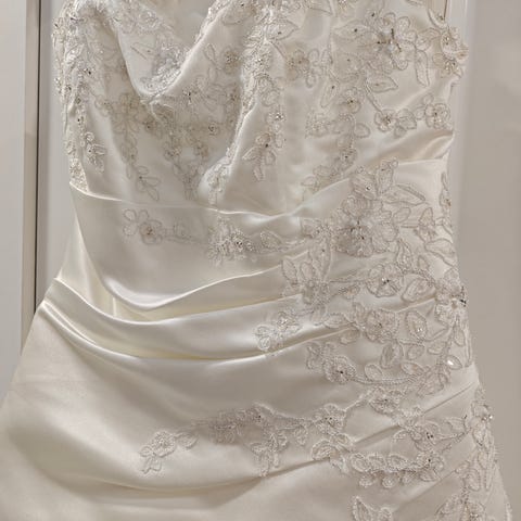 Väri kaunis ivory, koko UK12 (vastaa noin 36/38). Täydellinen valinta unohtumattomaan juhlapäivään!