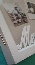 Kaunis uusi lasiovinen lokero tai vitriini, toimii myös säilytysrasiana pöydällä. Jäi yli sisustusuudistuksesta. Mukana pussillinen nuppineuloja kuvien kiinnitystä varten.