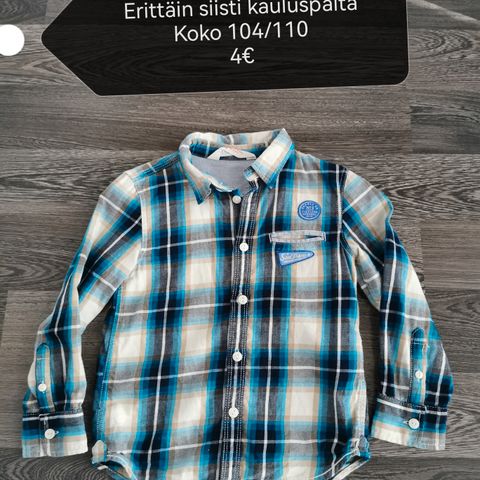 Myydään hyväkuntoinen kauluspaita. Valkoinen/ruskea ruutukuvio. Koko 104. Hinta 3e.