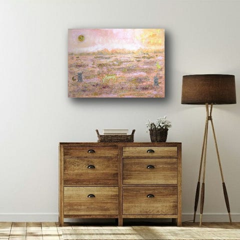 Kehystämätön pistemaalaus akryylimaalilla puuvillakankaalle. Sopii esille vaakaan tai pystyyn. Värejä maalauksessa punainen, sininen, keltainen, valkoinen, lila. Taulun nimi ja taiteilija kuvassa 5. Korkeus valkoisten reunojen kanssa n. 49cm, leveys n. 80,5cm. Maalatun kuvan korkeus n. 41,4cm, leveys n. 71cm.
