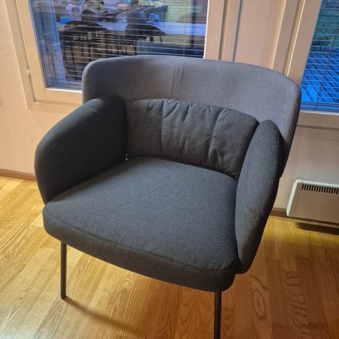 Ikean söderhamn lepotuoli. Ostettu 2023 ja tällä hetkellä vaan tiellä. Nouto Kouvolan keskustasta. Kuvassa näkyy tyynyssä painumajälki sivuttain, se on kadonnut tässä kohtaa jo eli ei ole siinä enää. Erinomaisessa kunnossa.