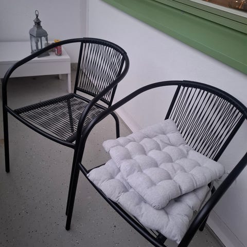 Kaksi hyvälaatuista polyrottinki tuolia.