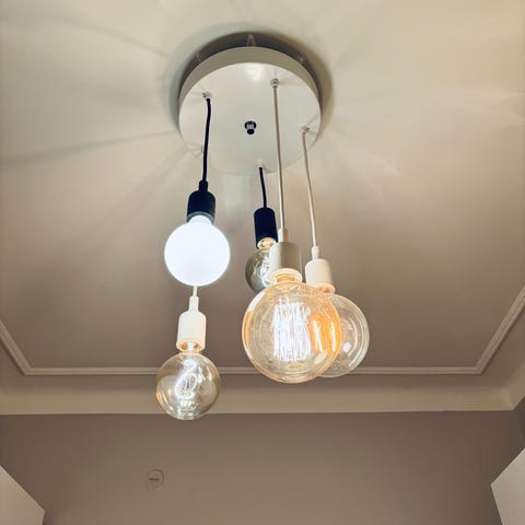 Moderni ja tunnelmallinen kattovalaisin: 4× Muuto E27 + 1× Clas Ohlson