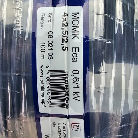 Kaksi kytkentäboksia ja 3-vaihe uros- ja naaraspistotulpat kumikaapeleiden päässä. Ollut kahden rakennuksen työmaalla maakaapelin molemmissä päissä työmaasähköä varten. 4x2.5+2.5 neliön kumikaapelit molemmissä päissä - kestää 16A virran / vaihe.