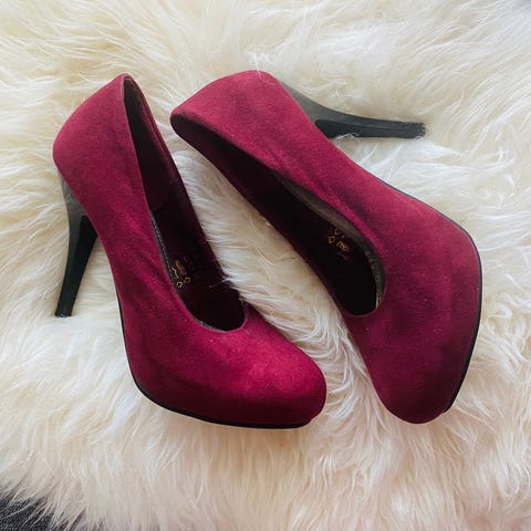 Punaiset viehättävät korkokengät, mokkanahkaa.