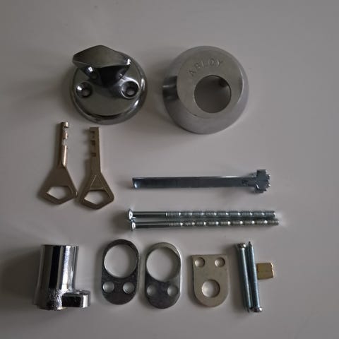 Abloy 5781 avainpesä, vääntönuppi ja asennustarvikkeet puuoveen. 3kpl avaimia Abloy classic, kromattuna, messinkisenä ja ruskeana. Uusia käyttämättömiä. Hinta vain 55 euroa kpl. Postituskulut lisätään hintaan.