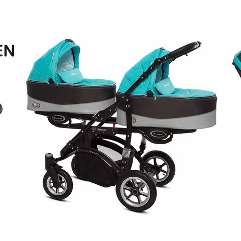 Sisältää 2 vaunukoppaa ja 2 lastenratasistuinta