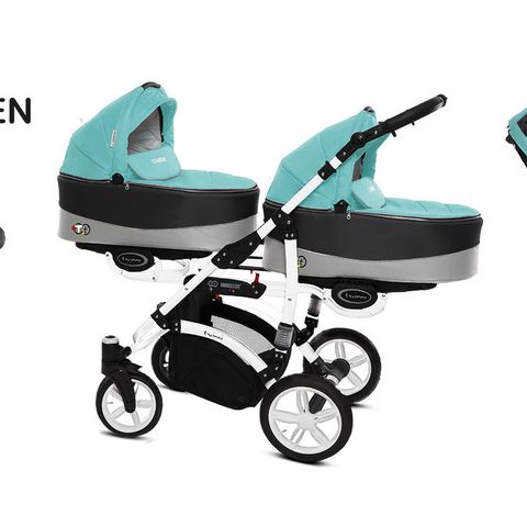 Sisältää 2 vaunukoppaa ja 2 lastenratasistuinta