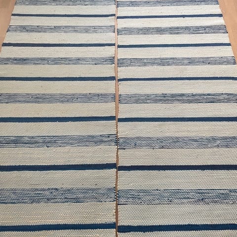 Kolme luonnon valkoista puuvillasekoitemattoa myyntiin. Matot ovat olleet käytössä, mutta ovat puhtaat ja ehjät sekä hyvässä ja siistissä kunnossa. Pitkä matto on 3,35 m pitkä + hapsut. Lyhyemmät matot ovat á 1,45 m pitkät + hapsut. Mattojen leveys on 82 cm. Matot ovat pesulassa pesetettyjä, eikä niitä ole pesun jälkeen käytetty.