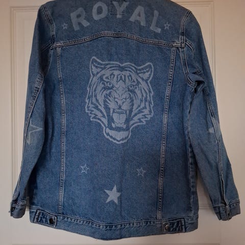 Farkkutakki tyylinen takki. Leveällä kauluksella tai ylös napittaessa korkeakauluksinen! Takana joku läiskä, josta en tiedä lähteekö pesussa. Sen takia edullinen hinta!!!