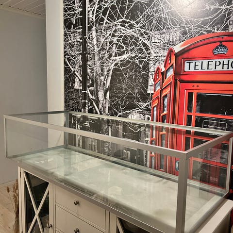 Tarantellalla ollut terraario, ei päällysverkkoa. Mitat 80x40x40cm.