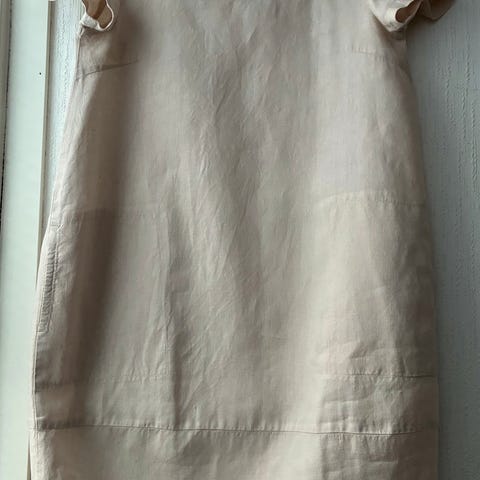 Marimekon ihana oranssi pellavamekko. Malli: Kaijut Coco. Sivusaumoissa on halkiot ja taskut. Vetoketju takana.