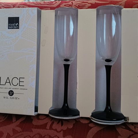 Punaisella sydämellä koristellut samppanjalasit, 4 kpl, h=20cm, alkuperäisessä styrox-pakkauksessa. Voin lähettää.
