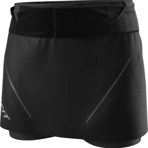 Täysin käyttämätön juoksuhame kahdella juomapullolla (pullot myös käyttämättömät, sinettiä ei ollut alunperinkään). Koko M, väri sininen/musta. Edessä kolme pientä avonaista taskua esim geeleille, takana kaksi isompaa pienille juomapulloille, sekä niiden välissä yksi vetoketjullinen tasku.