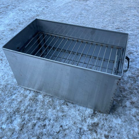 Peltisepän tekemä savustuspönttö. Ulkoiset mitat 45x26x23.